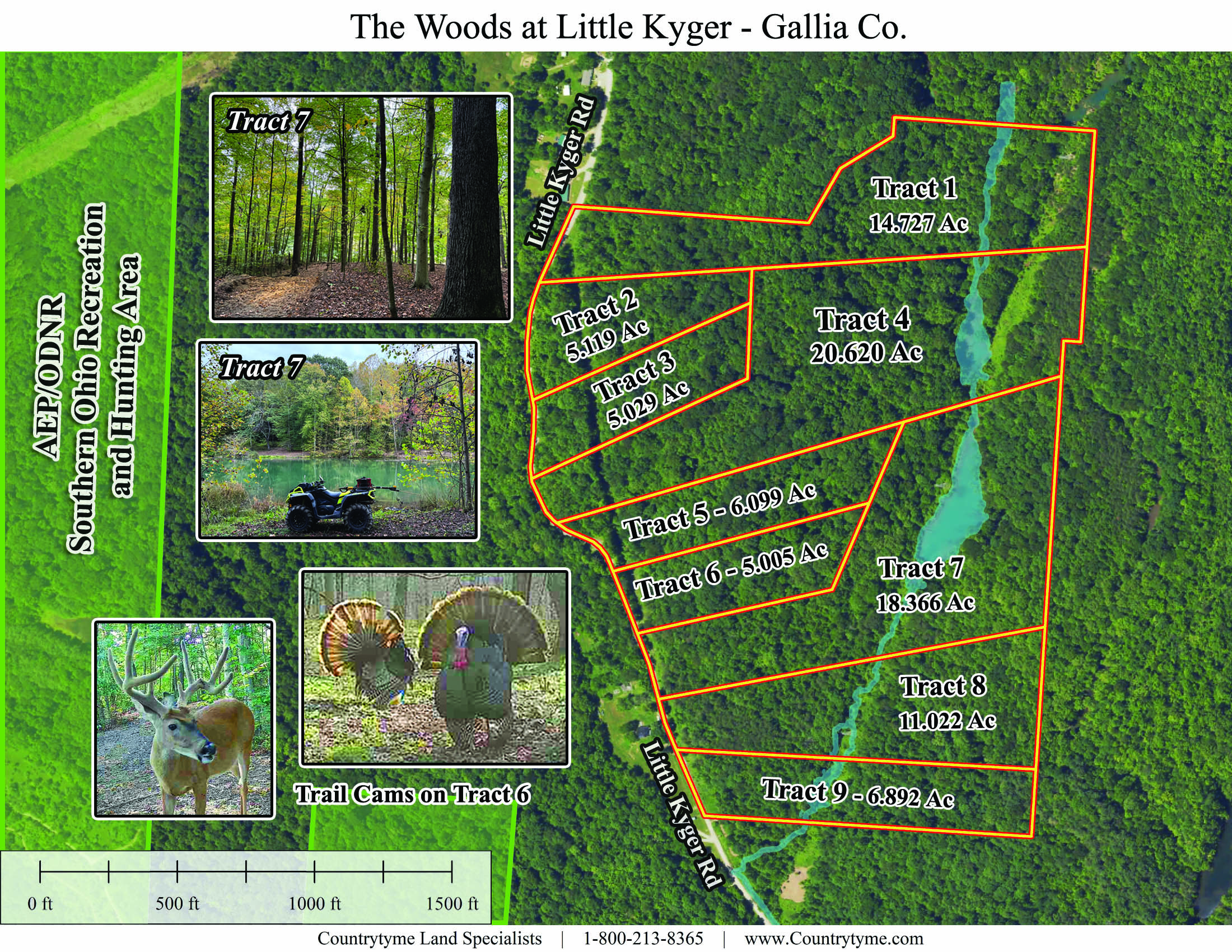 Tract 9 at Woods at Little Kyger offers 6.768 acres of beautiful wooded ground with a private, park-like setting and the kind of character that stands out from the moment you arrive. A new gated gravel driveway leads to a tucked-away destination spot surrounded by mature open-canopy woods, creating an ideal setting for a cabin, home, or recreational retreat. The rolling topography adds both beauty and function, creating a scenic wooded setting with a natural layout for a walkout basement. As you explore the property, you’ll find a trail system winding through the woods, making it easy to enjoy the land on foot or by ATV. A seasonal stream adds another natural feature, while the mix of timber, cover, and terrain creates excellent wildlife habitat throughout the property. Deer and turkey are known to frequent the area, adding to its appeal for hunting and outdoor recreation. Marketable timber appraised at $7,303 provides additional value, and the location only adds to the opportunity. Just one mile from the AEP/ODNR Southern Ohio Recreation and hunting area (over 1,300 acres), this tract offers a quiet remote country setting with outstanding recreational opportunities both on the property and throughout the surrounding area.
